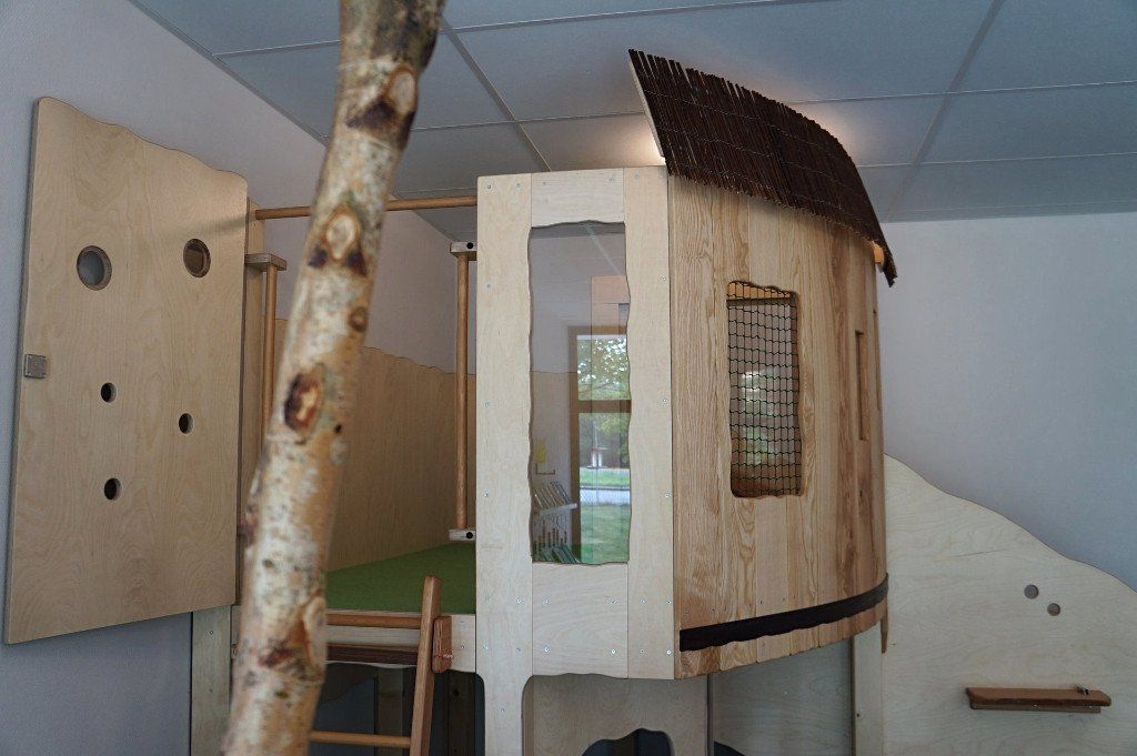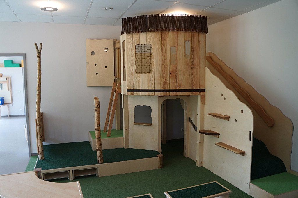 U3 Gruppenraumausstattung - kleines Häuschen mit 2 Etagen, Wellentreppenaufgang und Rückzugsecke